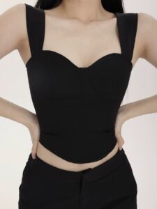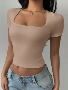 کراپ یقه خشتی (Square Neck Crop) یکی از مدلهای مدرن و ترند سالهای اخیره. این یقه ترکیبی از استایل کلاسیک و امروزیه و برای اندام لاغر فوقالعادهست.